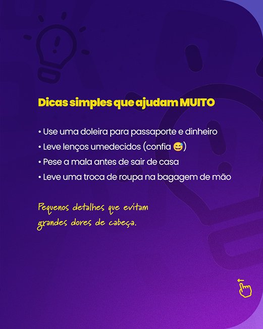 Leve uma muda de roupa na bagagem de mão — caso sua mala demore para chegar;